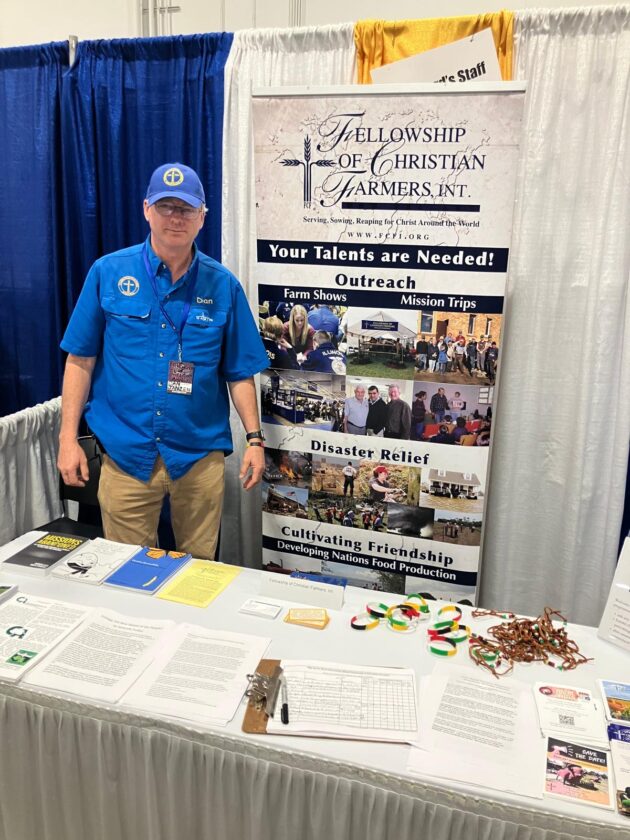 The Fellowship of Christian Farmers, International welcomes you to explore how you can get involved. Join us to lend a hand in a disaster relief project or join a mission trip. There are dozens of farm shows each month and more than twenty State FFA Conventions where FCFI members interact with high school FFA members about their spiritual walk with the Lord.
