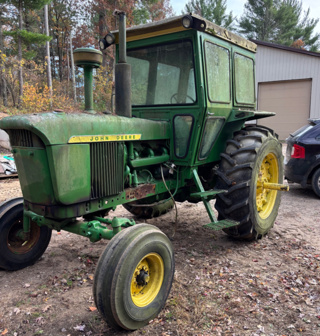 Undeterred, Bob and I managed to drag the tractor to the camp shop. Upon inspection, we discovered the engine was in rough shape. We’ve spent the winter working on it whenever time allowed, determined to bring it back to life. Physically, the tractor wasn’t in bad shape—the hood had a tree fall across it, and it bore the usual front dent that many 4020s get—but it had seen better days.